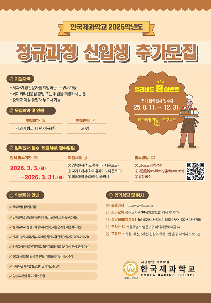 경기도가 주최한 2025 제5회 전국 쌀베이킹 콘테스트에 본교 정규반(제53회) 학생들이 참가하여