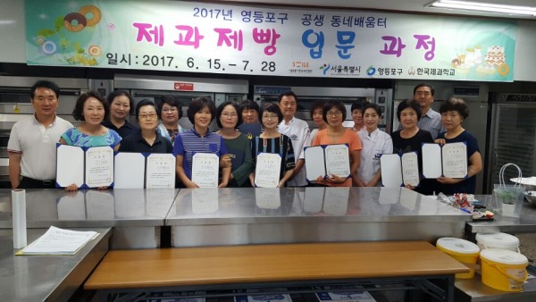 2017학년도 공생 동네배움터 제과제빵실용과정 개강 (17.8.24) 영등포구청에서 공생 동네배움터 교육경비 보조금 지원을 받아 영등포 주민 대상으로 2017년 8월24일부터10월19일까지 매주 목, 금 주2회 제과제빵실용과정을 실시합니다.