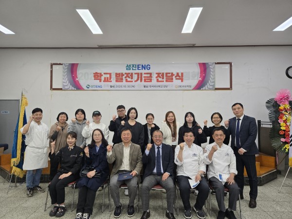 2025년 10월30일(목), 성진ENG에서 한국제과학교의 발전을 위해학교 발전기금 1,000만원을 기부하였습니다. 전달식은 본교 강당에서 진행되었으며, 성진ENG 이강철 대표이사, 한국제과학교교직원 및 학생들이 함께 뜻깊은 시간을 가졌습니다. &nb…