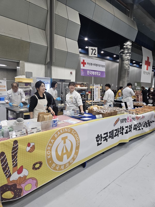 대한적십자사 여성봉사특별자문위원회가 주최하고 대한 적십자가 주관한사랑의 나눔 바자회에한국제과학교가 함께 참여했습니다. 이번 행사에는 한국제과학교 정규반 학생들이 직접 만든 제과제빵 제품을 선보이며,판매 수익금은 어려운 이웃을 돕는 따뜻한 나눔 활동에 사…